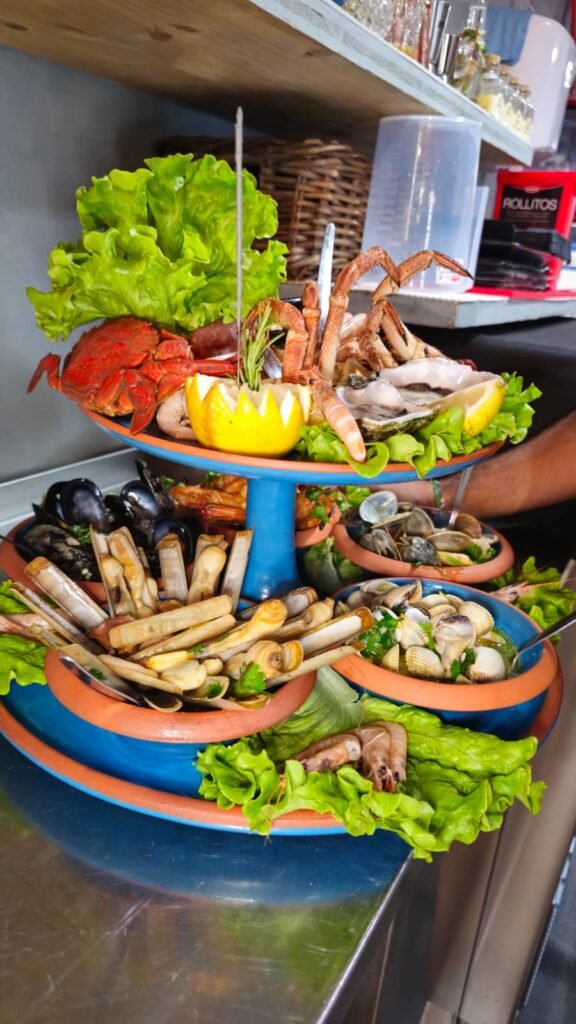 Uma torre de Marisco composta com mariscos da nossa montra onde prova um pouco de tudo