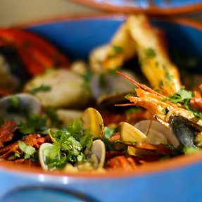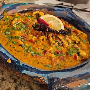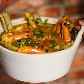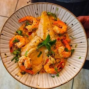 Uma fusão de ingredientes do mar, polvo e camarão ,com um toque de sabores de dois países Angola e Brasil fazem deste prato uma explosão ao seu palato