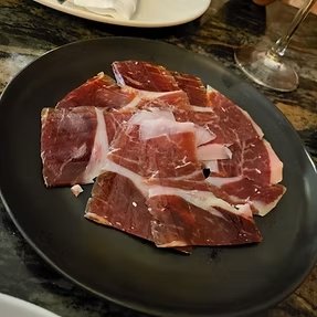 Presunto ,Jamón ibérico, também conhecido como “Pata Negra” é um tipo de presunto curado produzido em Portugal,Espanha um sabor inconfundível com uma textura sublime provavelmente um dos melhores presuntos do mundo