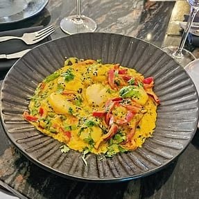Delicioso caril de vieiras: Este prato exótico combina o sabor suave e delicado das vieiras com a intensidade e os aromas exóticos do caril. Uma explosão de sabores que irá encantar o paladar.