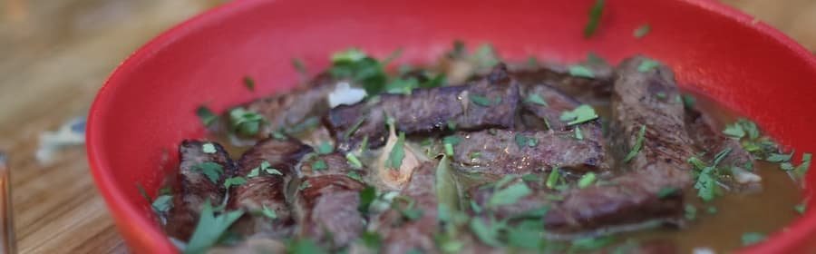 Sem complicações, mas com uma carne tenra acompanhado com batata, no prato ou no pão