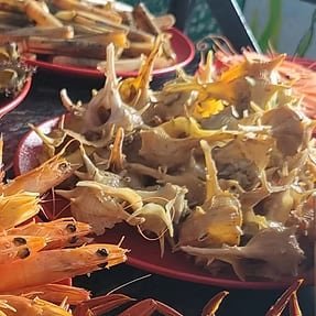 Desde Camarão frito, gamba da costa, amêijoas, mexilhões, perceves, gamba cozida, sapateira, ostras, berbigão e tudo aquilo que o mar, na altura nos consegue nos dar